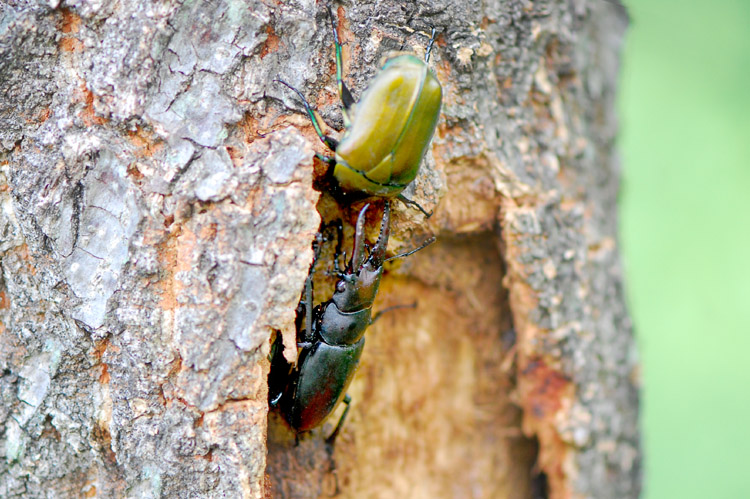 ノコギリクワガタとカナブン